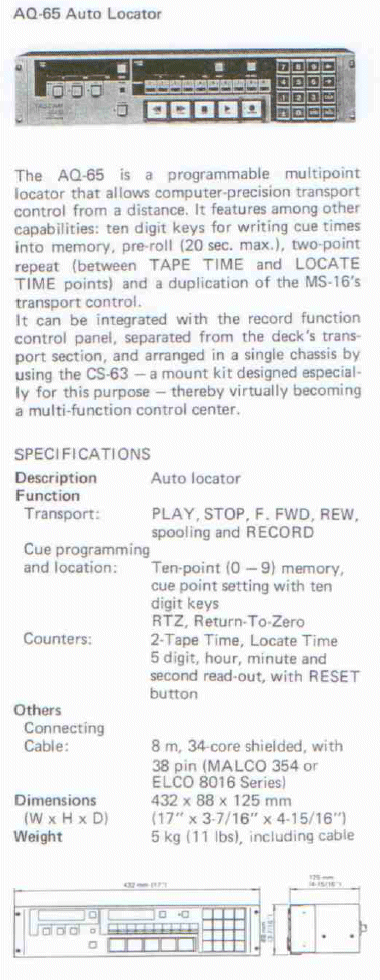 Tascam AQ-65 - Auto Locator for Tascam MS-16 1" 16-channel Reel to Reel