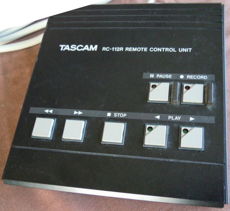 Tascam RC-71 - $65 (or on eBay for $70) Wireless Tascam RC-71 has a 12-pin remote interface remote adapter for the Tascam 22-4, 32, 34, 34B, 38, 42, 44, 44OB, 48, 48-OB and 388 reel to reel decks as well as the Tascam 112, 112B, 122, 122MkII, 133 and 234 cassette decks and the Teac A-3440 that use the 12-pin WAKA connector. See picture below. This unit does the same functions as the Tascam RC-71 wired remote, but, wirelessly.