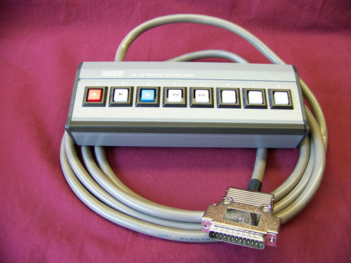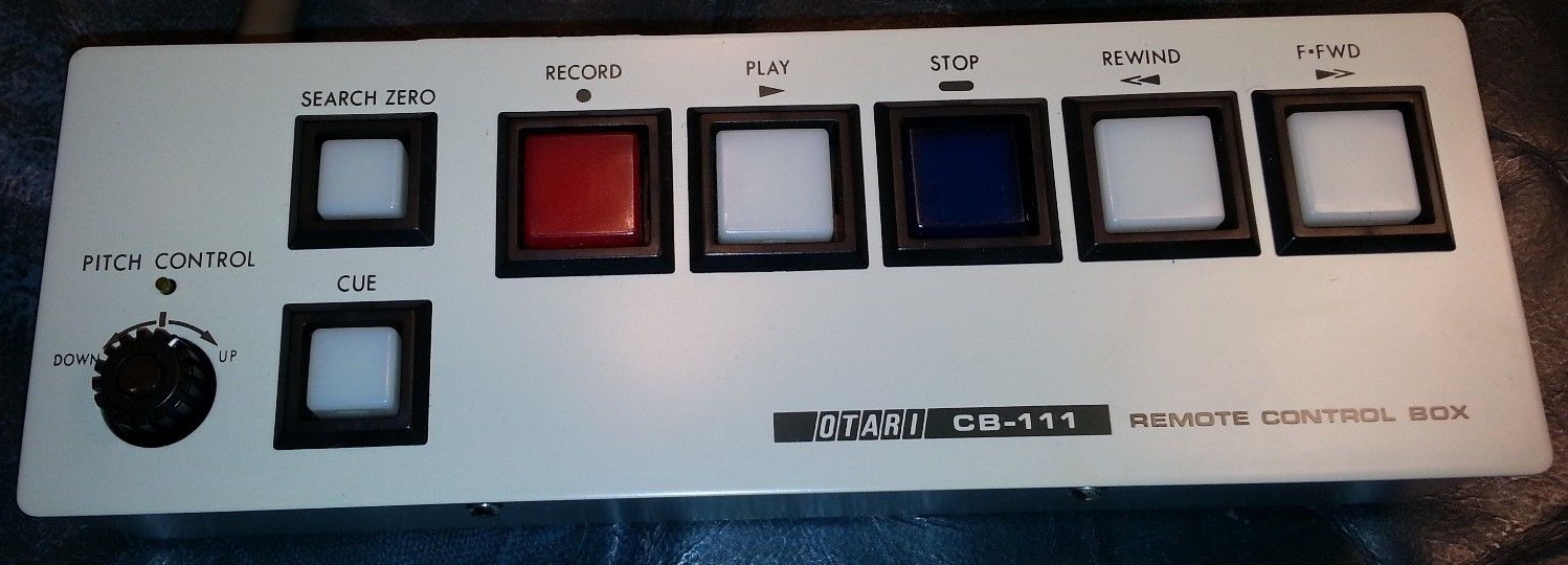 CB-110 for the Otari MX-5050 MkIII 8-track. Plugs into the blue 50-pin Honda connector on the back of the deck. Controls Play, Stop, Fast Forward, Rewind and Record.